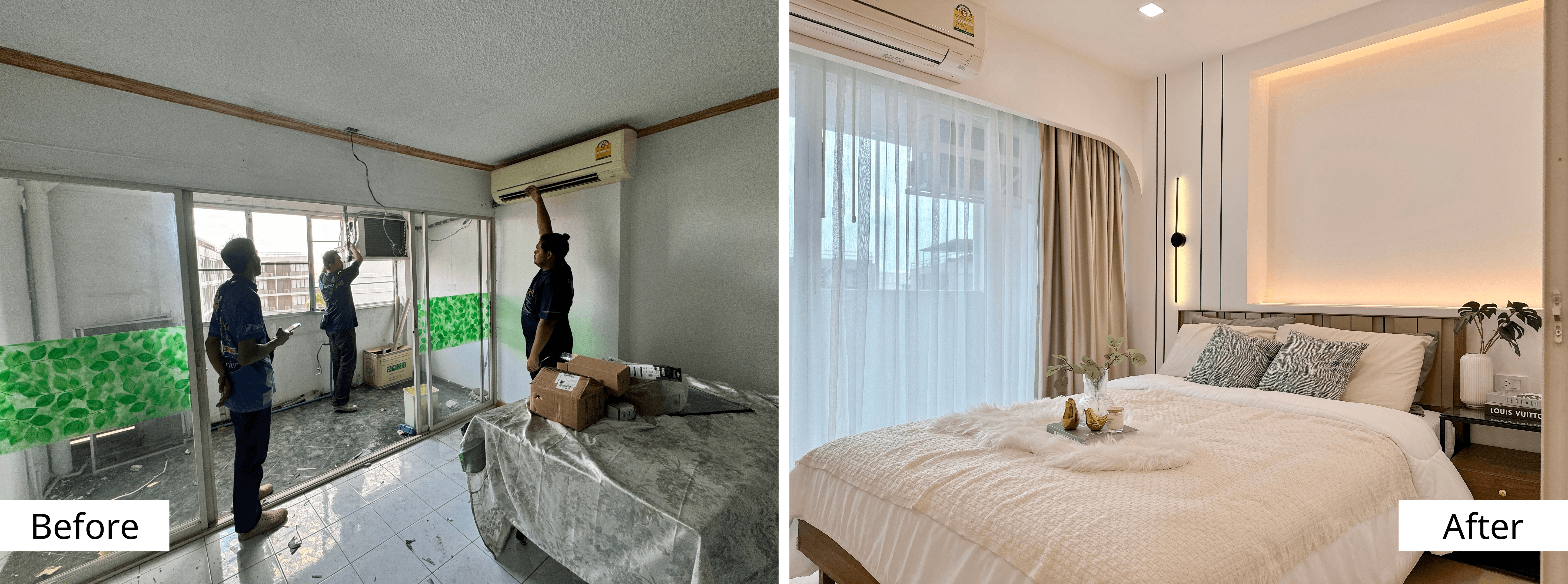 Layout ของห้องมีความท้าทายสูง มีข้อจำกัดของพื้นที่และโครงสร้างเดิม การแบ่งกั้นห้องให้เป็นสัดส่วนไม่ง่ายเลย
