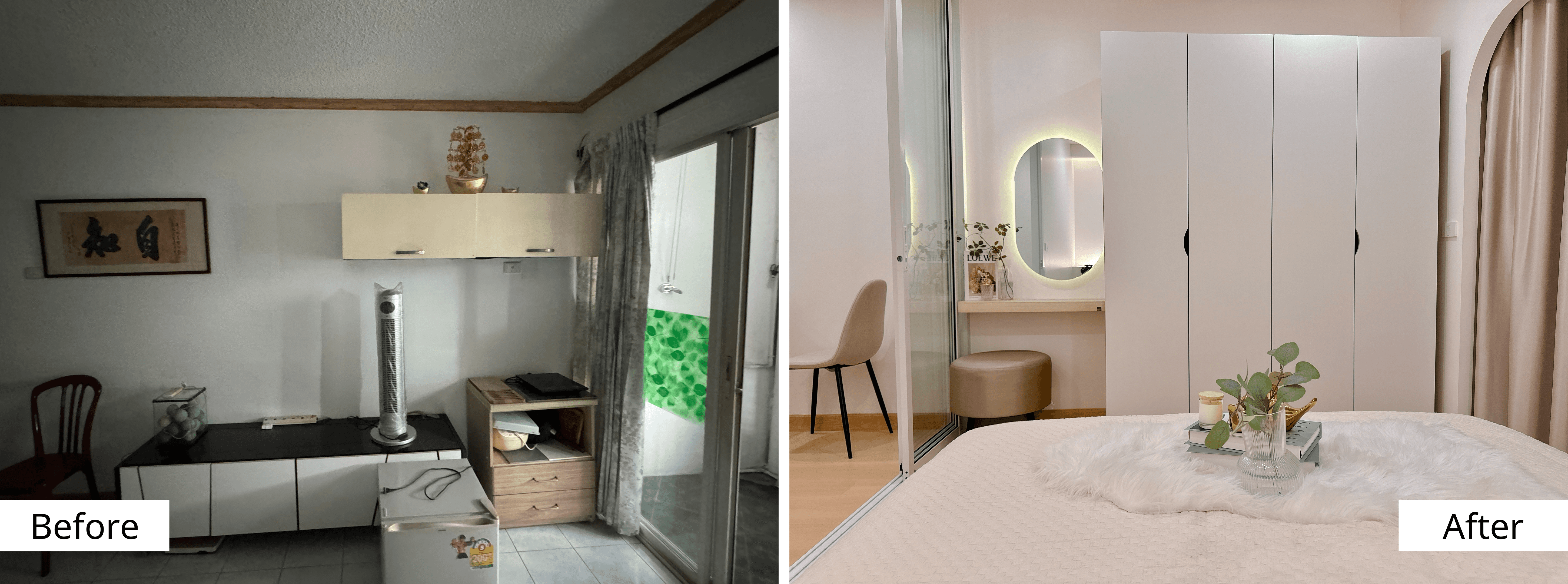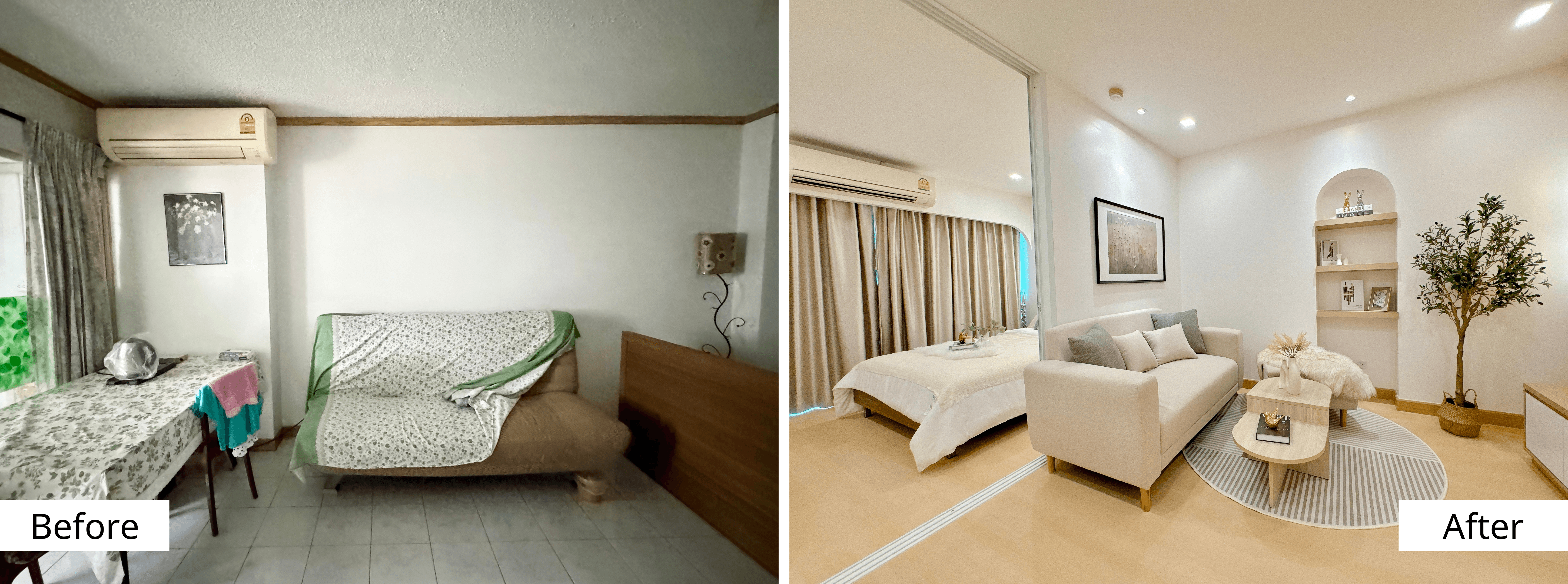 ในการรีโนเวทเพื่อเพิ่มมูลค่าห้อง จำเป็นต้องแบ่งห้องจากสตูดิโอให้เป็น 1 ห้องนอน พร้อมจัดเรียงฟังก์ชันการใช้งานให้เหมาะกับไลฟ์สไตล์คนยุคใหม่